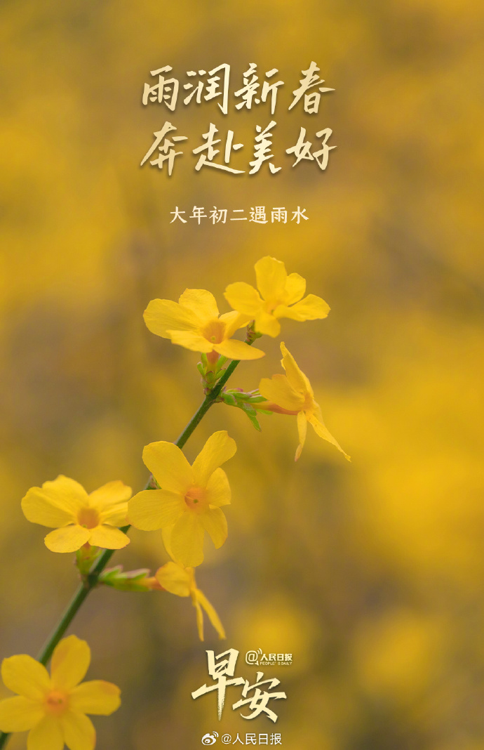 今天是大年初二,恰逢雨水节气,春雨滋润万物生发,也带来新的开始。万象更新,欣欣向荣,正是蓄力向前的好时节。大年初二遇雨水,新的一天,愿你在充满生机的日子里,从探亲团聚的温情中汲取满满的能量,一马当先,奔赴美好。